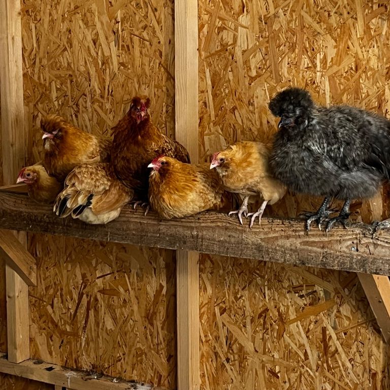 Die aufgeweckte Hühnerschar lebt in ihrem Hühnerhotel und hat immer etwas zu gackern.